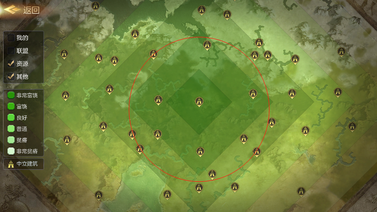 注:中立建筑分不同等级和不同增益效果,等级越高增益效果越好,当然等级越高的建筑开放得也越晚,同时往往越高级的建筑越靠近地图中心。根据战力要求和开放时间,大概可以分为四个等级。中立建筑的增益效果可以互相叠加,所以联盟占得越多越好(同名建筑只能占领一个,可不要贪心)。