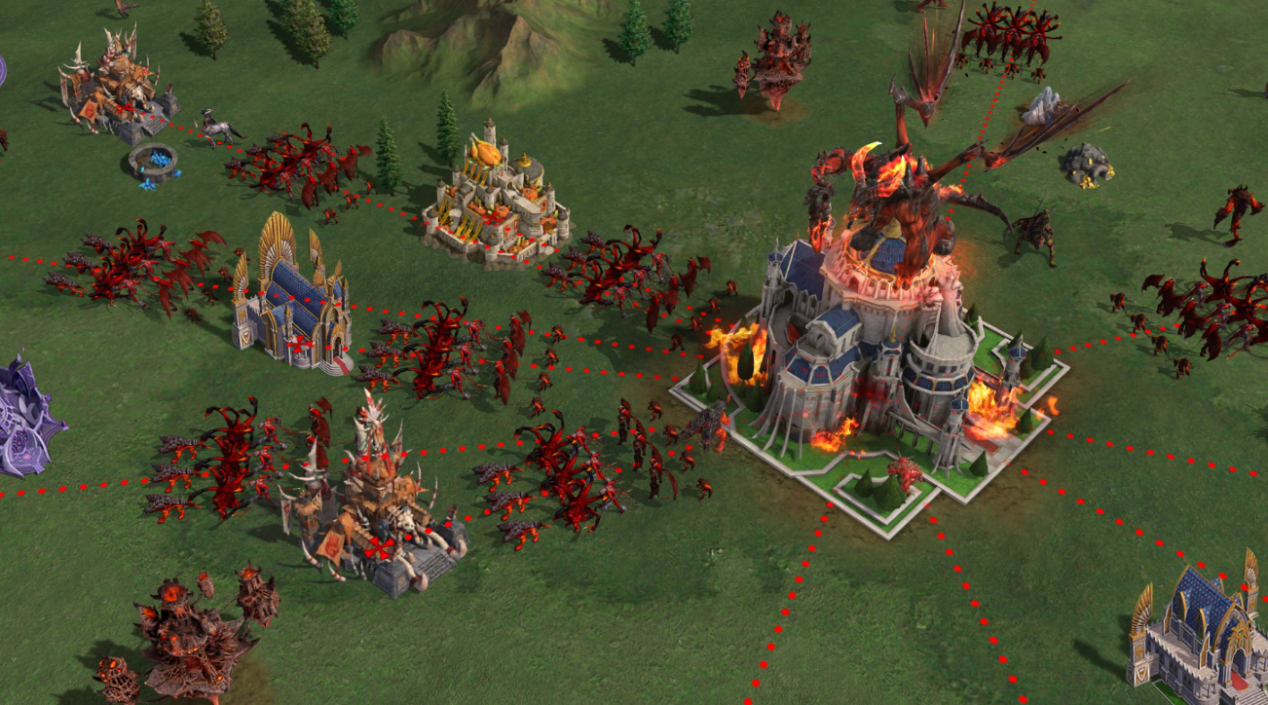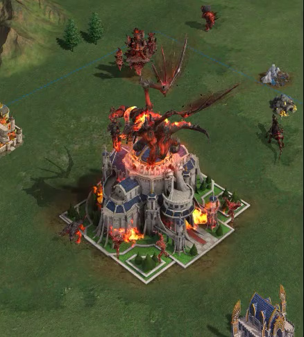 当恶魔们被顽强的阻击消耗殆尽时,它们会收缩到联盟主殿。此时将是反攻的好机会——发起集结,攻击联盟主殿,夺回家园,把恶魔赶回它们的监牢之中,获得全面的胜利。同样,在战斗中表现英勇的领主和联盟也会获得不同的积分。