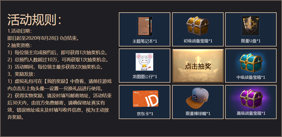 跨服联盟战作为目前版本中最大规模的战役,所需资源、竞争强度都是不言而喻。为了配合跨服联盟战赛事开启,官方预约活动现已上线。只要玩家通过专属活动页面进行预约,就可获得龙币、金币、保护罩、龙鳞等资源奖励,除了丰厚的专属预约战备礼包外,还有各类游戏周边、京东卡等你抽取,人人有奖,全民参与,跨服联盟战的战前动员福利必须送到每个领主手中。