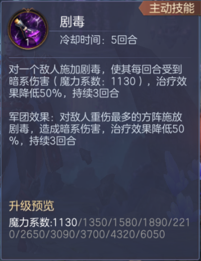 莱托兹的得意之作——剧毒!虽然这种药剂一次只能释放在一位敌人身上,但却能造成十分严重的中毒伤害,而在地下城暗系能力的加持下,更是能将治愈效果减少到50%,可以说在战斗中不容小觑。而随着研