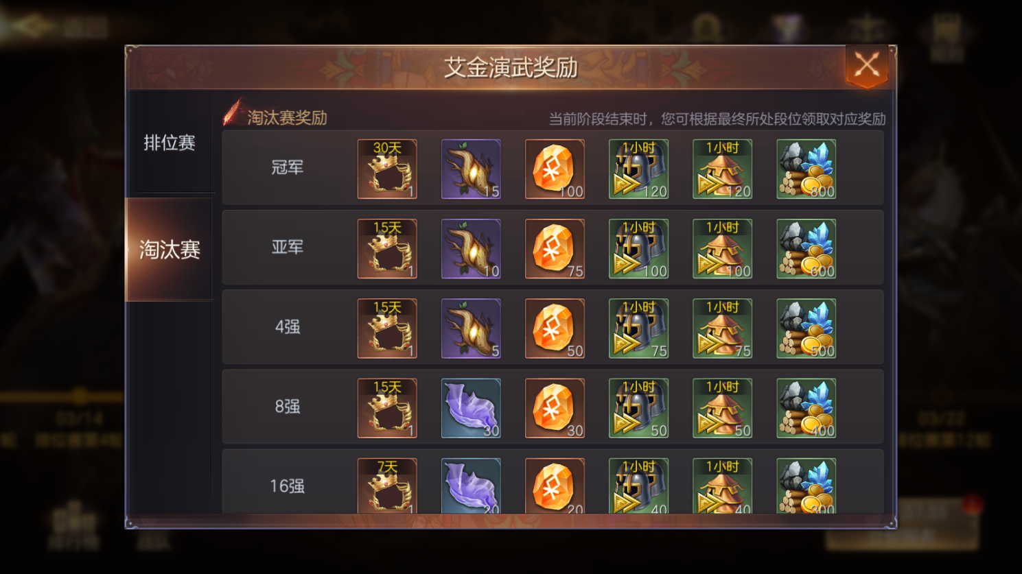4.淘汰赛阶段的奖励是额外的一份奖励,名次越高的战队获得的奖励越丰富,奖励将于被淘汰的那一轮进行发放,冠亚军的奖励将于最后一轮发放。