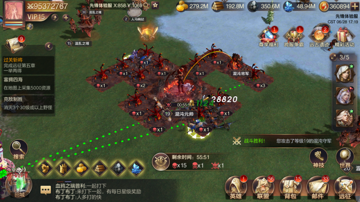 (3)混沌要塞需按照固定顺序进行挑战并获得对应的积分,挑战顺序为:混沌守军->混沌将军->混沌元帅,即挑战混沌将军时需先净化其周围的混沌守军,挑战混沌元帅时需先净化所有的混沌将军和混沌守军