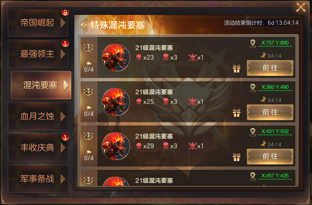 (5)活动期间,每天9点、12点、15点、18点、21点会刷新高级混沌要塞,产出更多的英勇之星和更高级奖励