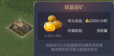 但是联盟资源点 则是需要使用联盟旗帜去圈地占领的一个特殊资源点,前期联盟金币稀缺,基础所有的联盟技能升级都需要金币