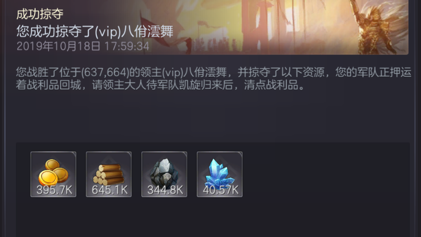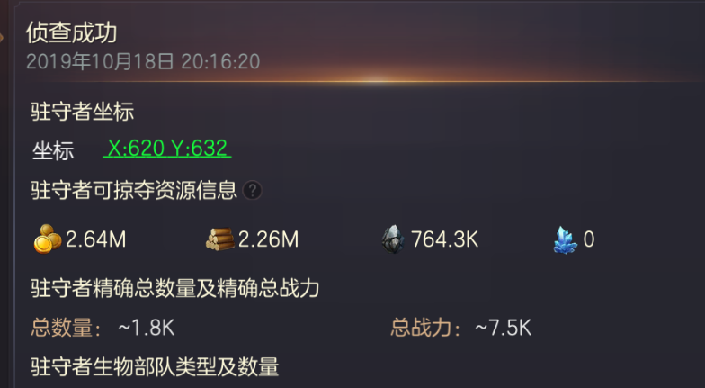 建议领主在准备掠夺资源之前,先派遣侦察兵侦查,通过检阅报告查看对方可掠夺的资源是否值得,以及对方的驻守部队战力如何。经过衡量之后再决定是集结还是攻击,亦或是就此放弃,选择下一家。