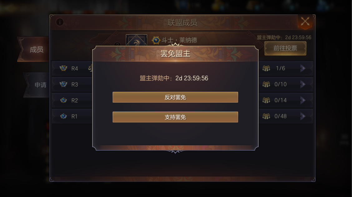 新增的联盟领袖是系统根据一段时间内贡献最高者自动删选的,且联盟领袖可对失职的盟主发起罢免的权限,最后由所有成员投票决定最终结果。是的,从今天起,联盟也将变得非常的民主,所有的成员都有领导的可能和监督罢免的权利。
