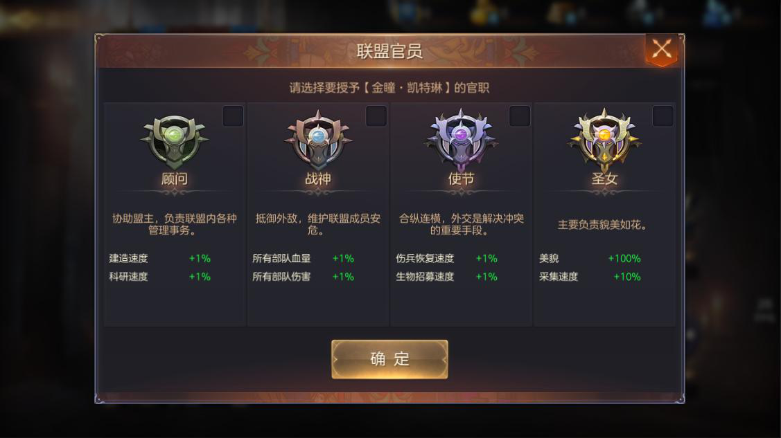 一个成熟的管理团队,只有一两个牵头人可不行,还需要任命各种官员去分管不同的板块。亚山各联盟也将设立顾问、战神、使节、圣女等职位,选由适合的玩家担任,形式专属的管理权,在联盟集结时也可进行集结信息推送,保证各联盟成员第一时间收到战斗信息。联盟建设绝对不是吸纳最多的人数就行,而是怎么能最大限度调动盟内玩家积极性,联盟各位官员发挥管理能力,策略能力,组织大家一起向更大的领地、更丰厚的利益出发!